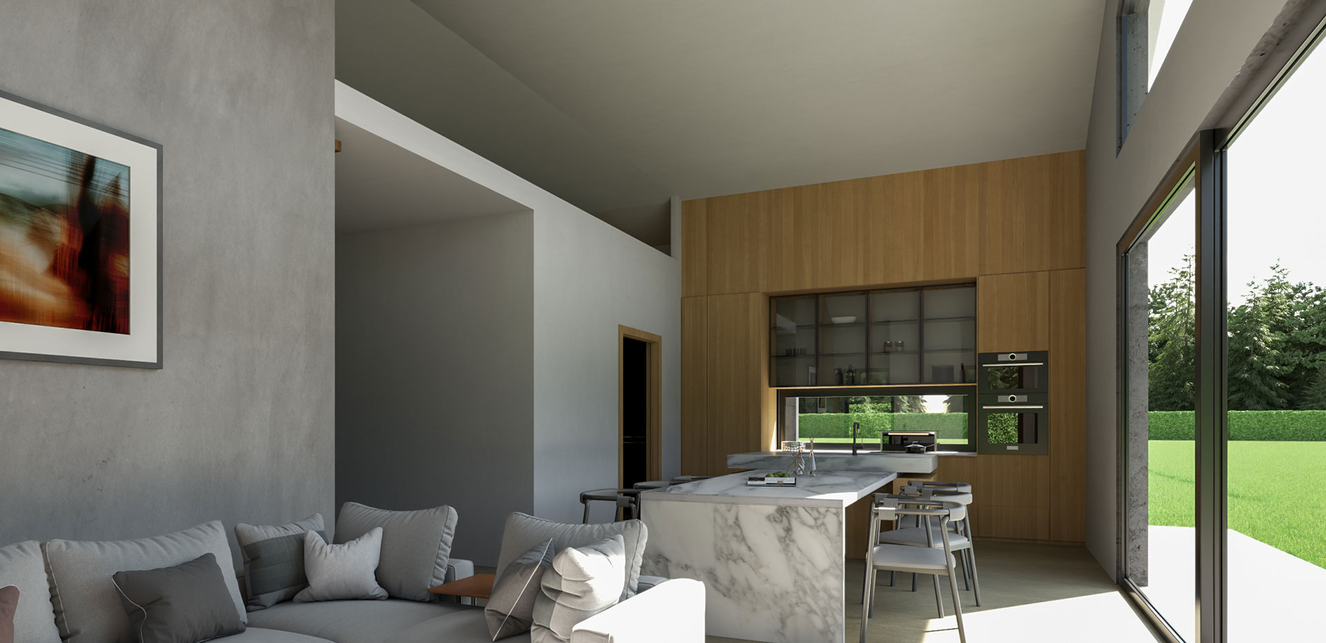 El corazón de la vivienda es su espacioso salón-cocina, un área semiabierta que combina diseño contemporáneo y funcionalidad. Grandes ventanales permiten la entrada de luz natural y refuerzan la conexión con el exterior, creando un ambiente cálido y acogedor, ideal para el día a día y momentos especiales.